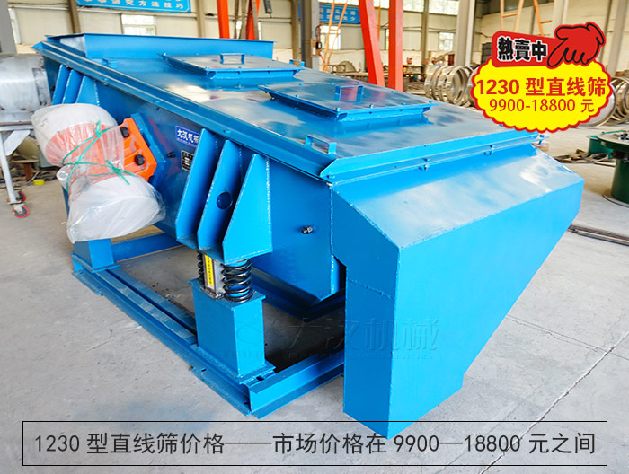 1230型直線篩價格——市場價格在9900—18800元之間,不同的層數、材質、配件也會導致同型號的不同的價格,詳情可咨詢客服獲取(ps.大漢近期在做優惠活動,限時8.5-9折,歡迎各位新老用戶前來購機~)