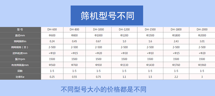 菜籽不銹鋼振動篩不同型號大小的價格都是不同的,常用的型號有DH-400、DH-600、DH-800、DH-1000、DH-1200、DH-1500、DH-1800、DH-2000等八種標準型號。一般來說型號和振動電機是相互關聯(lián)的,型號越大振動電機的功率就越大,在一定時間內(nèi)能夠篩出的菜籽篩分產(chǎn)量就越多,相應的價格就越貴。