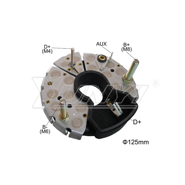 | Diodes:14-50 Ampere Diameter OD:125mm With M8×52mm Battery Post With M4×32.5mm Trio Post With M6×52mm Ground Post With Trio For use on:Mercedes,Saab scania,Volvo Truck |