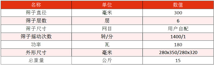 產(chǎn)品簡介:電動振篩機是實驗室中比較常用的篩分設備,該機可以配合各種規(guī)格的方孔,圓孔標準套篩進行使用,套篩從20-300目任選。