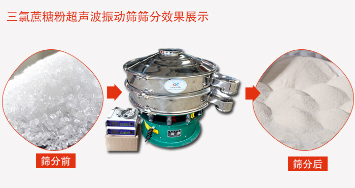 三氯蔗糖粉超聲波振動篩是超聲波技術與振動篩分技術的有機結合,它可以由普通篩分進行簡單的加超聲波系統(tǒng)改造而成,利用超聲波振動篩進行三氯蔗糖的篩分,能夠減少篩分過程的粉塵污染及產(chǎn)品消耗,能夠大幅提高篩分效率,節(jié)約成本,能夠消除或降低篩分過程的靜電吸附問題、避免或減少篩網(wǎng)堵塞問題,能夠有效提高篩分精度。