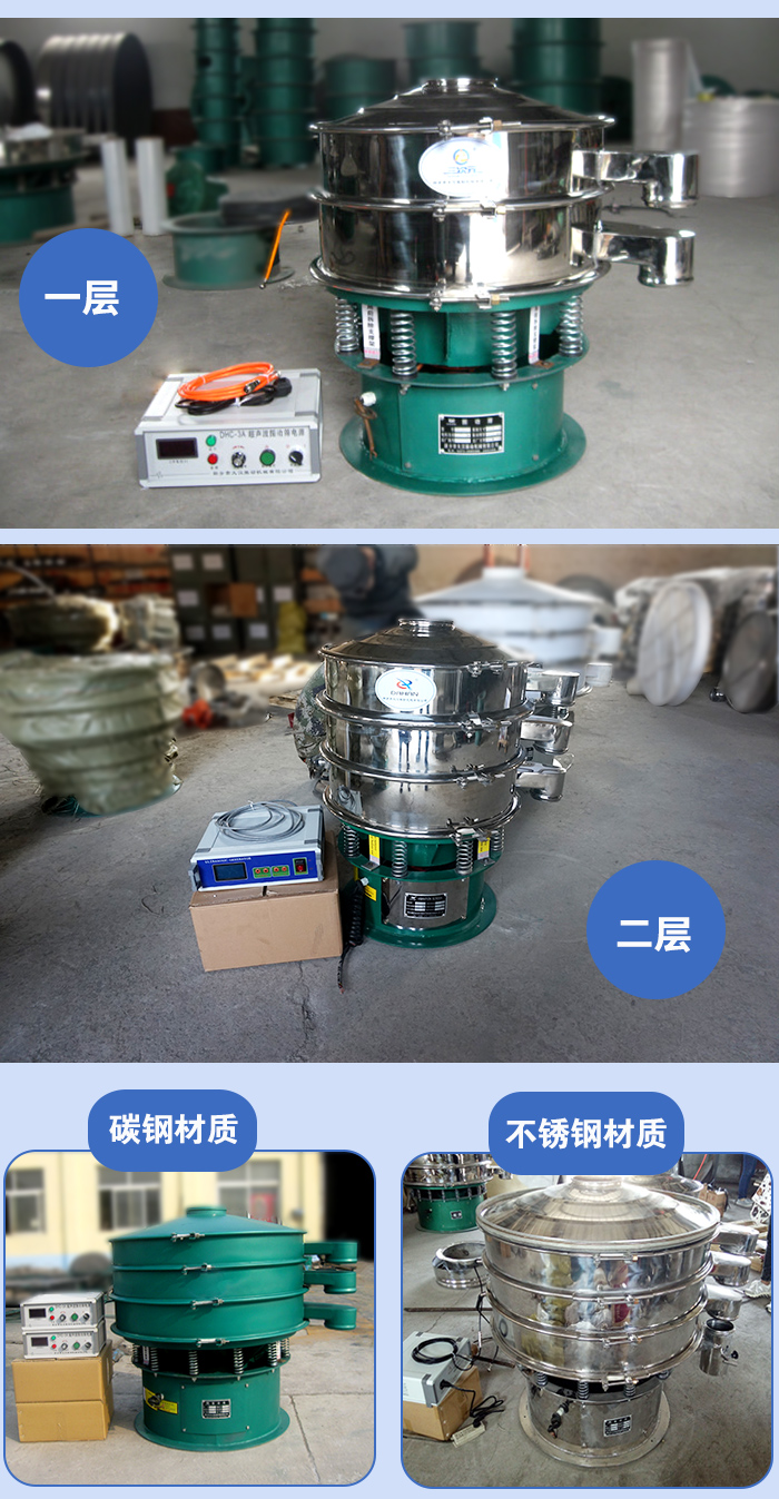 超聲波振動(dòng)篩是在旋振篩的基礎(chǔ)上加裝了一套超聲波系統(tǒng)。由超聲波電源、換能器,共振環(huán),連接線四部分組成。好處主要有: