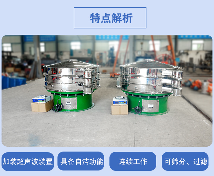 產(chǎn)品簡(jiǎn)介:超聲波振動(dòng)篩利用超聲波頻率振動(dòng)篩網(wǎng),振動(dòng)頻率可達(dá)每秒36000次,可使細(xì)粉狀物料在篩網(wǎng)上形成微懸浮狀態(tài),能更快地通過(guò)篩網(wǎng)而不產(chǎn)生靜電和粘在篩網(wǎng)上,篩分精度可提高80%以上,產(chǎn)量提高2-5倍。