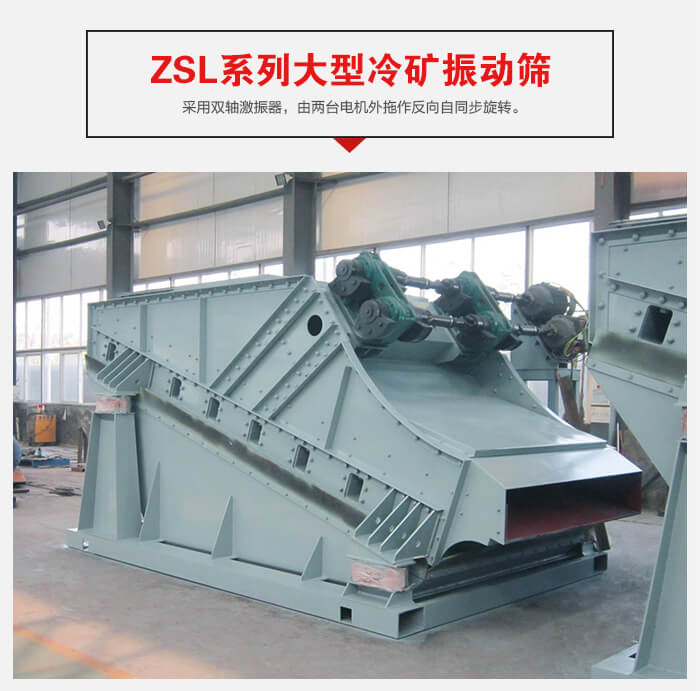 ZSL系列大型采用雙軸激振器,電機(jī)不參振,由兩臺(tái)電機(jī)外拖作反向自同步旋轉(zhuǎn),使篩箱產(chǎn)生較大振幅沿直線方向作周期性往復(fù)運(yùn)動(dòng),從而達(dá)到篩分目的的一種振動(dòng)篩設(shè)備。這種振動(dòng)篩具有生產(chǎn)能力大、工作可靠、振幅調(diào)節(jié)方便、傳給基礎(chǔ)的動(dòng)負(fù)荷小等優(yōu)點(diǎn)。