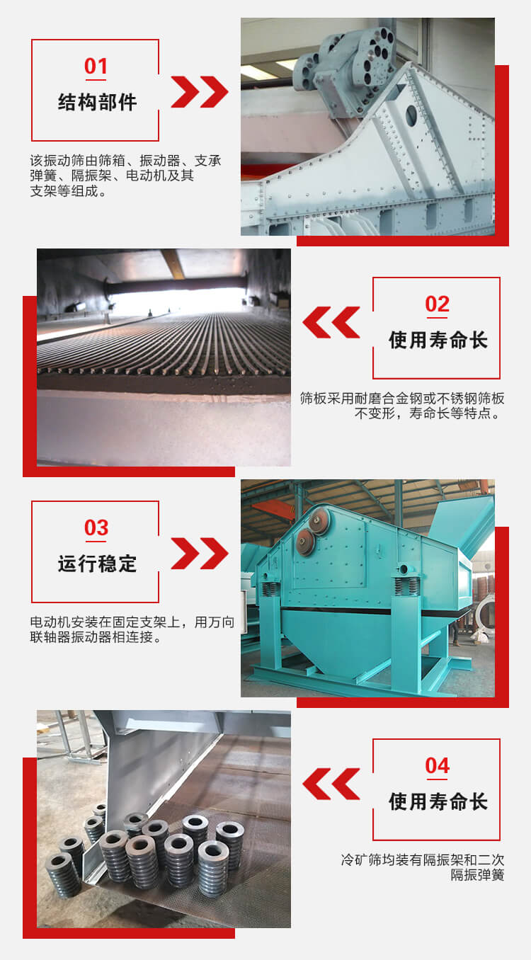已廣泛用于冶金、礦山、煤炭、港口等工業(yè)部門。這種系列冷礦篩根據(jù)工作場地的狀況,電機(jī)可安裝在左側(cè)或右側(cè);根據(jù)電機(jī)和激振器的安裝位置不同設(shè)計(jì)制造各種規(guī)格的冷礦振動(dòng)篩。