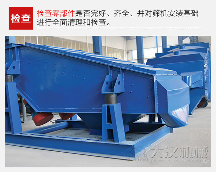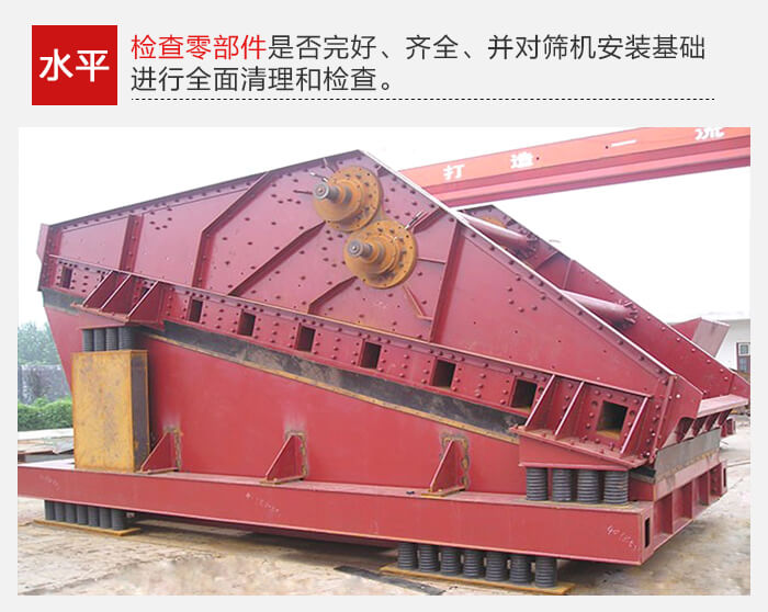 要檢查零部件是否完好、齊全、并對(duì)篩機(jī)安裝基礎(chǔ)進(jìn)行全面清理和檢查。