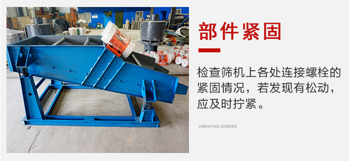 應(yīng)經(jīng)常檢查篩機(jī)上各處連接螺栓的緊固情況,若發(fā)現(xiàn)有松動(dòng),應(yīng)及時(shí)擰緊。